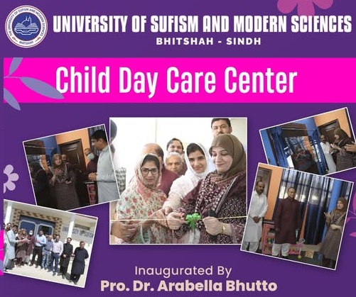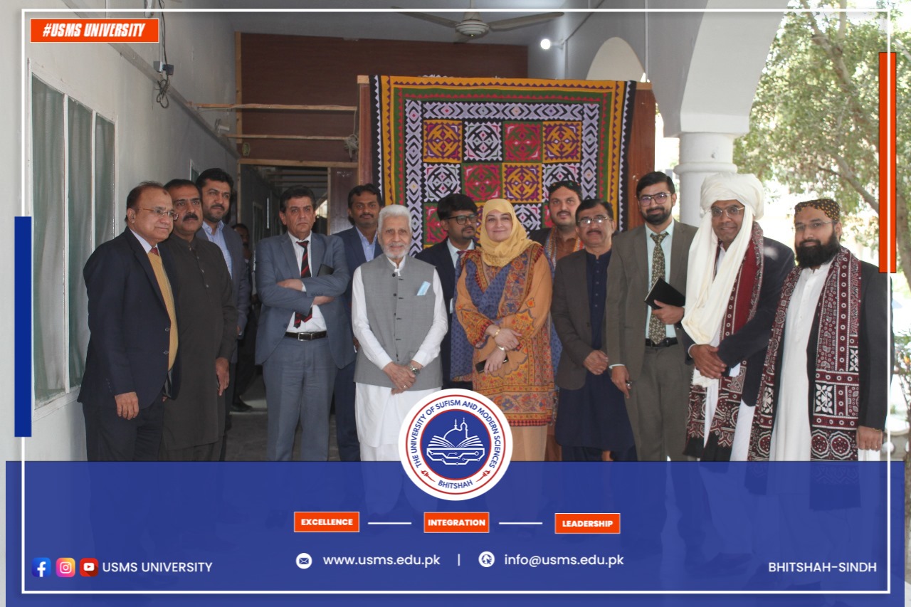 Bhitshah: Art, craft, and calligraphy exhibition was held at the University of Sufism and Modern Sciences Bhitshah on 25 January 2022. The Exhibition was hosted by the Department of Education, in which students presented different items of handicraft, art, craft, and calligraphy. The Exhibition was inaugurated by Vice-Chancellor Prof. Dr. Parveen Munshi and Dr. Tariq Bhatti, the chief guest of the Exhibition. They praised the students' artwork and said they are pretty good at art and craft ... Students make different things by hand and prove that they are proficient in education and art and craft. Prof. Dr. Tariq Bhatti, while addressing the students, said that our children do not give much importance to the English language but at present English language is very important in the world, so students should pay special attention to the English language. Chairperson Department of Education Dr. Samina Rafiq, Madam Sakina Jumani, Dr. Ali Murad Lanjawani, Registrar Dr. Farman Ali Shah, Dr. Ali Raza Rang, Dr. Humaiz Shaikh, and other teacher's and officials attended the art exhibition.