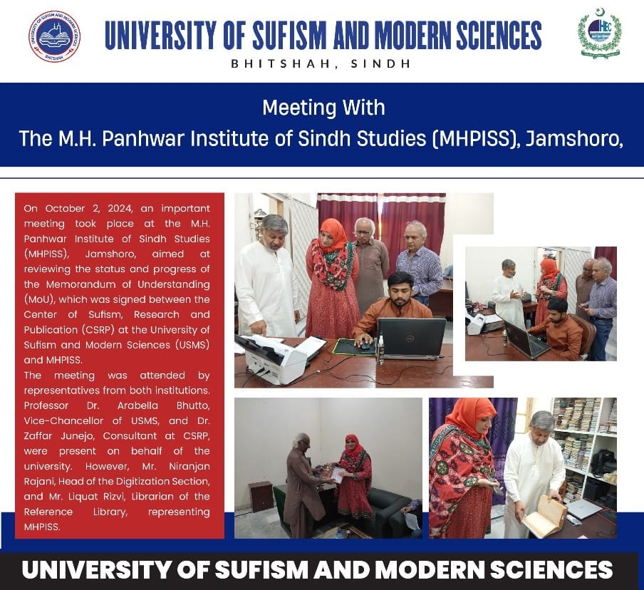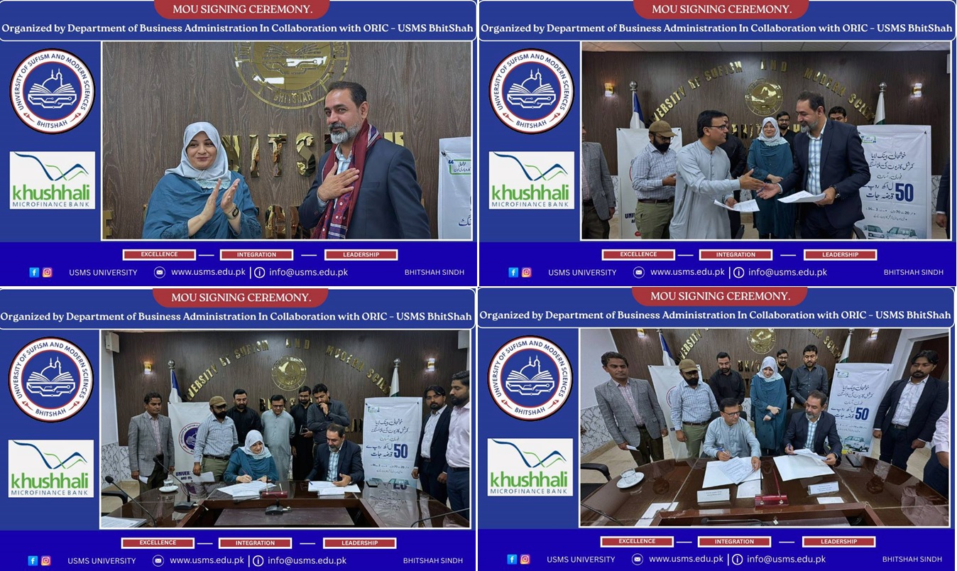 The University of Sufism and Modern Sciences (USMS), Bhitshah, under the chairmanship of Prof. Dr. Arabella Bhutto, Vice Chancellor of the University, signed a...