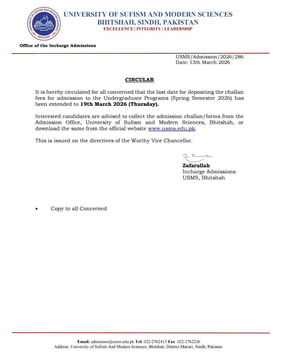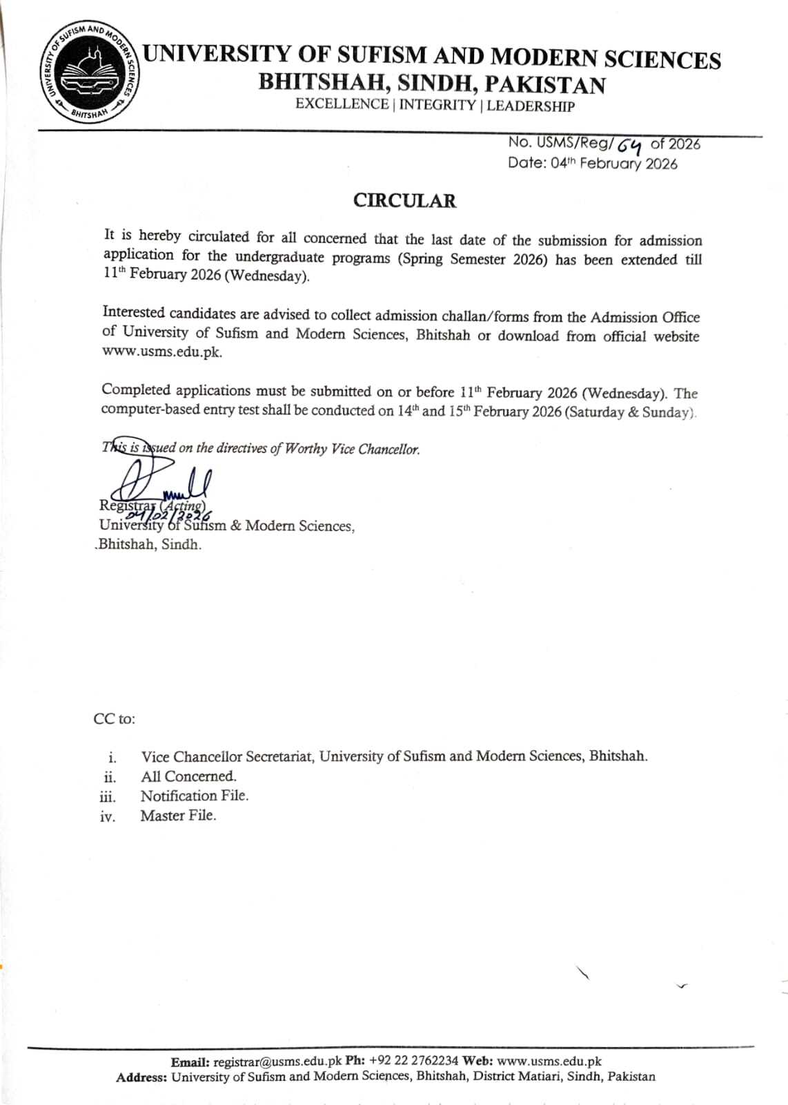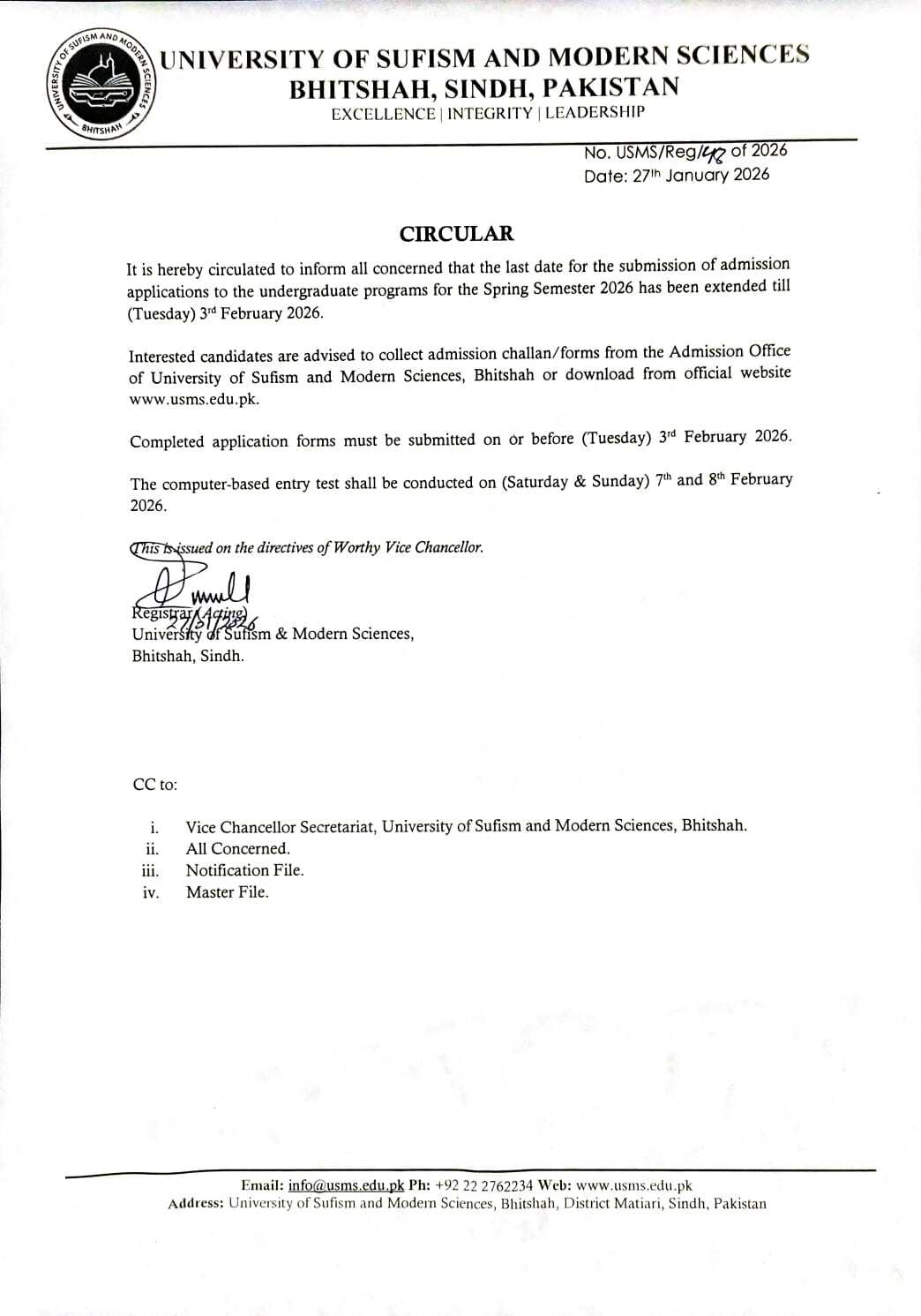 The University of Sufism and Modern Sciences (USMS) is situated in Bhitshah Town, Matiari District, home to a Shrine of the Sufi Saint HazratShah Abdul Latif Bhittai.