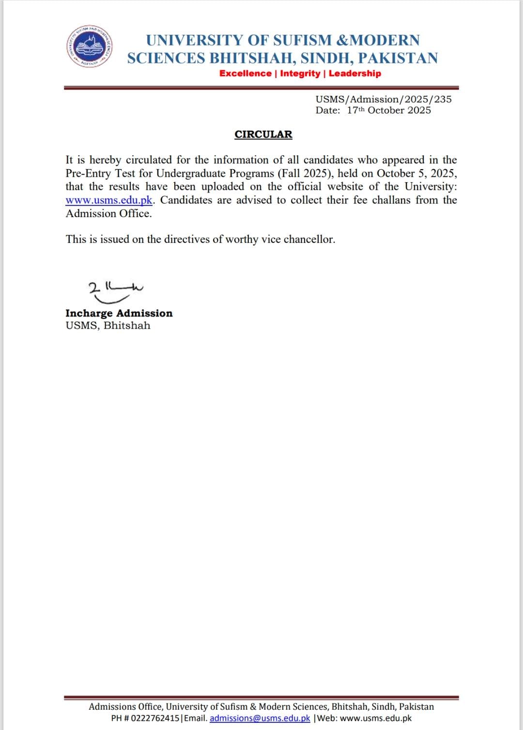 The University of Sufism and Modern Sciences (USMS) is situated in Bhitshah Town, Matiari District, home to a Shrine of the Sufi Saint HazratShah Abdul Latif Bhittai.