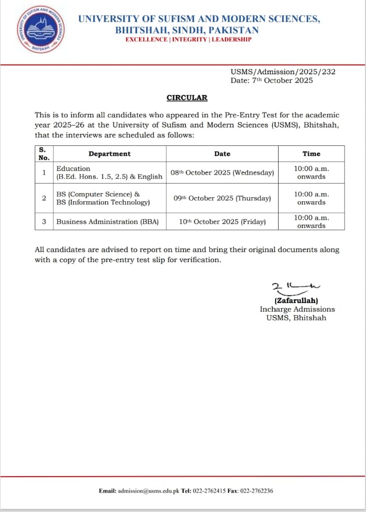 The University of Sufism and Modern Sciences (USMS) is situated in Bhitshah Town, Matiari District, home to a Shrine of the Sufi Saint HazratShah Abdul Latif Bhittai.